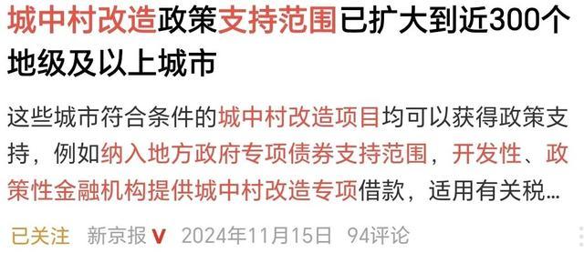 12月3日,住建部明确,城中村校正再提速,而况再次重申和强调了天下300城的城中村校正快速推动。